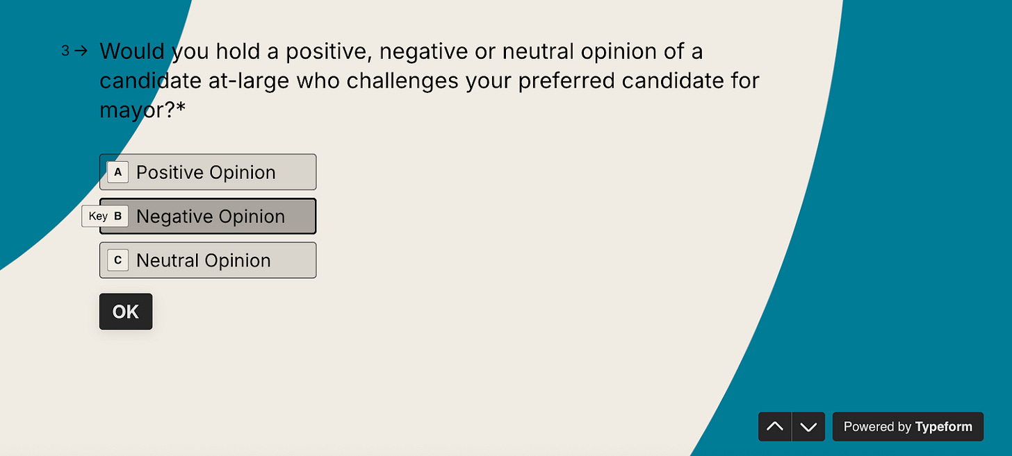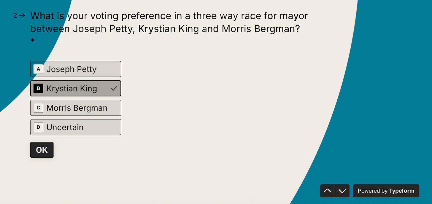 … heavily suggests the presence of Moe Bergman. Who would you vote for—the two publicly known mayoral candidates... or this third other guy on the list for an unstated reason?