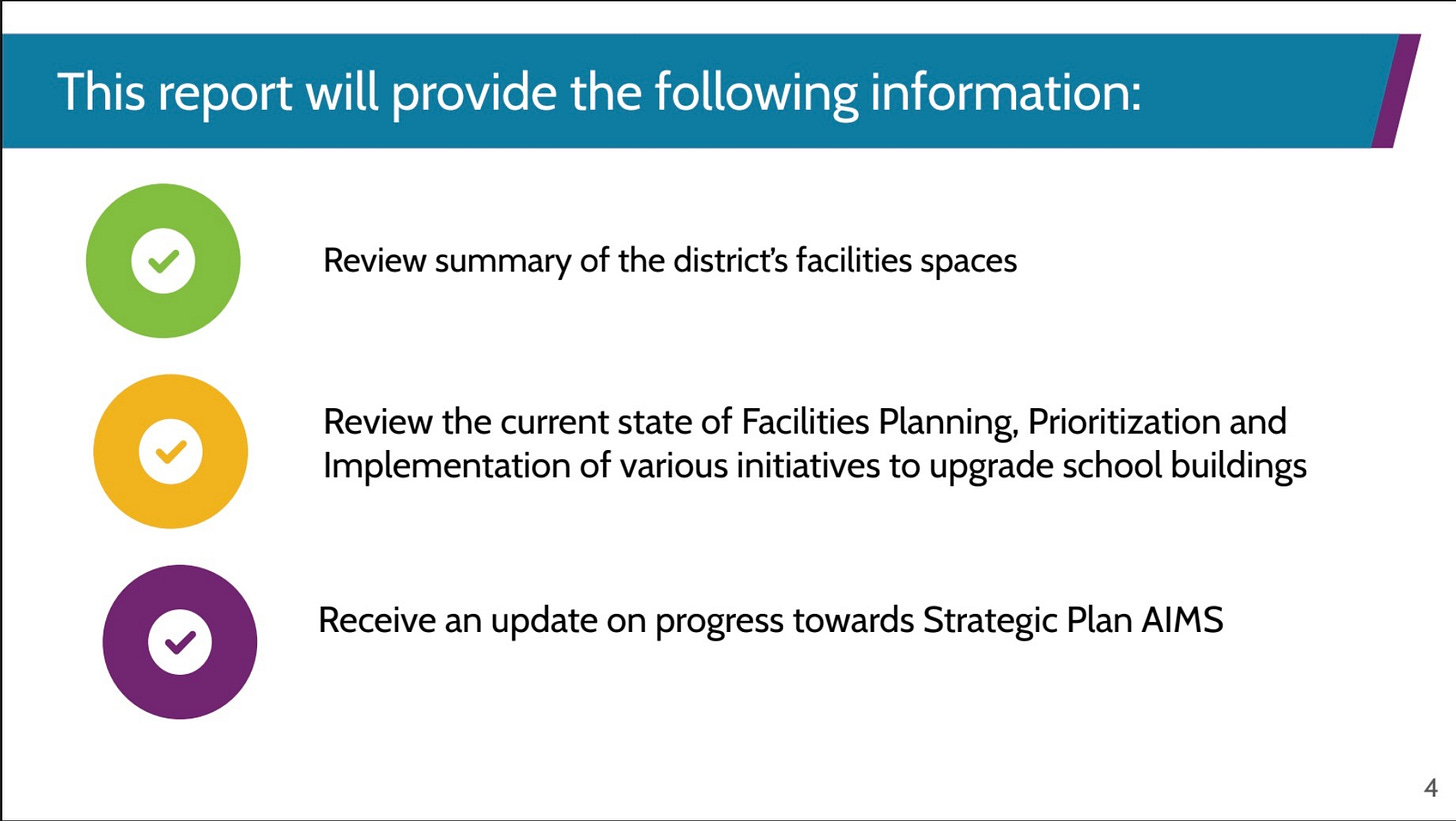 This meeting’s Report of the Superintendent is on Facilities and School Safety.