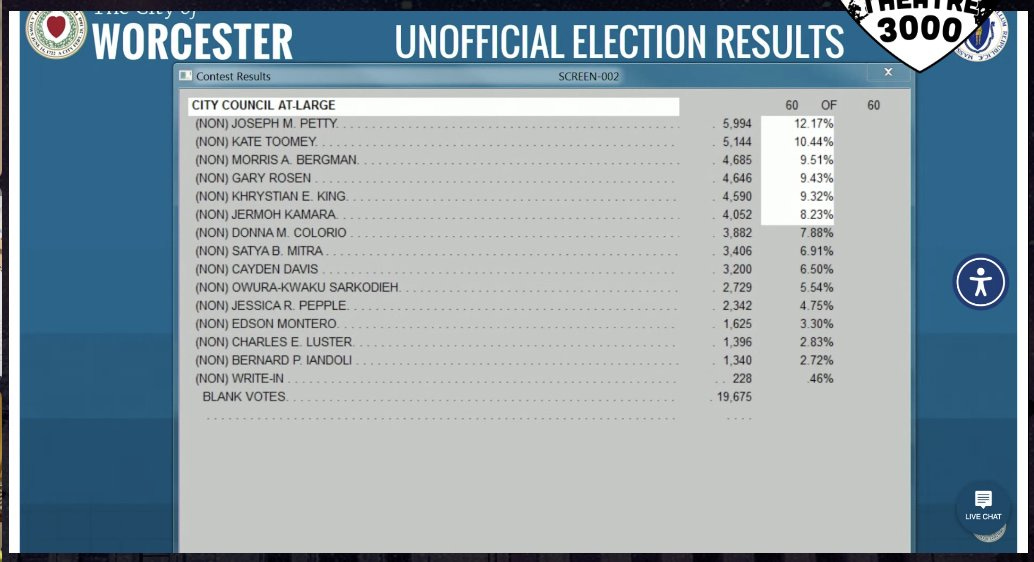 Here’s the PDF (i’m working on getting it into a spreadsheet, will update when I do… the clerk should be doing this….) and below are some screen caps of the live results from cable access.