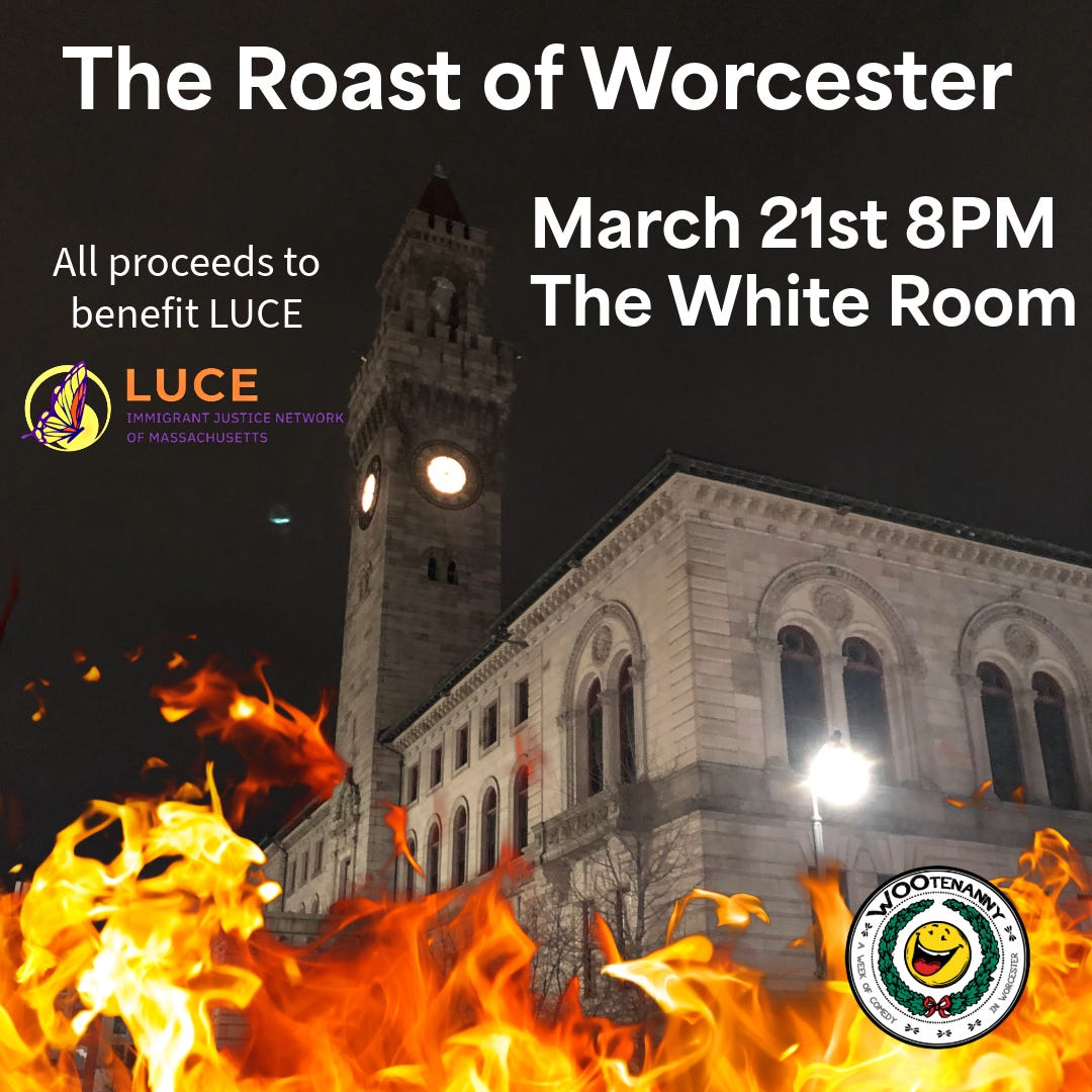 ALSO The Roast of Worcester is back! This year we’ll be raising funds for LUCE. The lineup is fantastic and thankfully Worcester has yet again given us a ton to make fun of. Make your donation here!