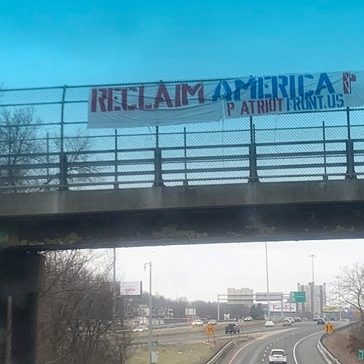 Really scary stuff. These are the same people who you may remember hung up that white power banner over 190 last January.