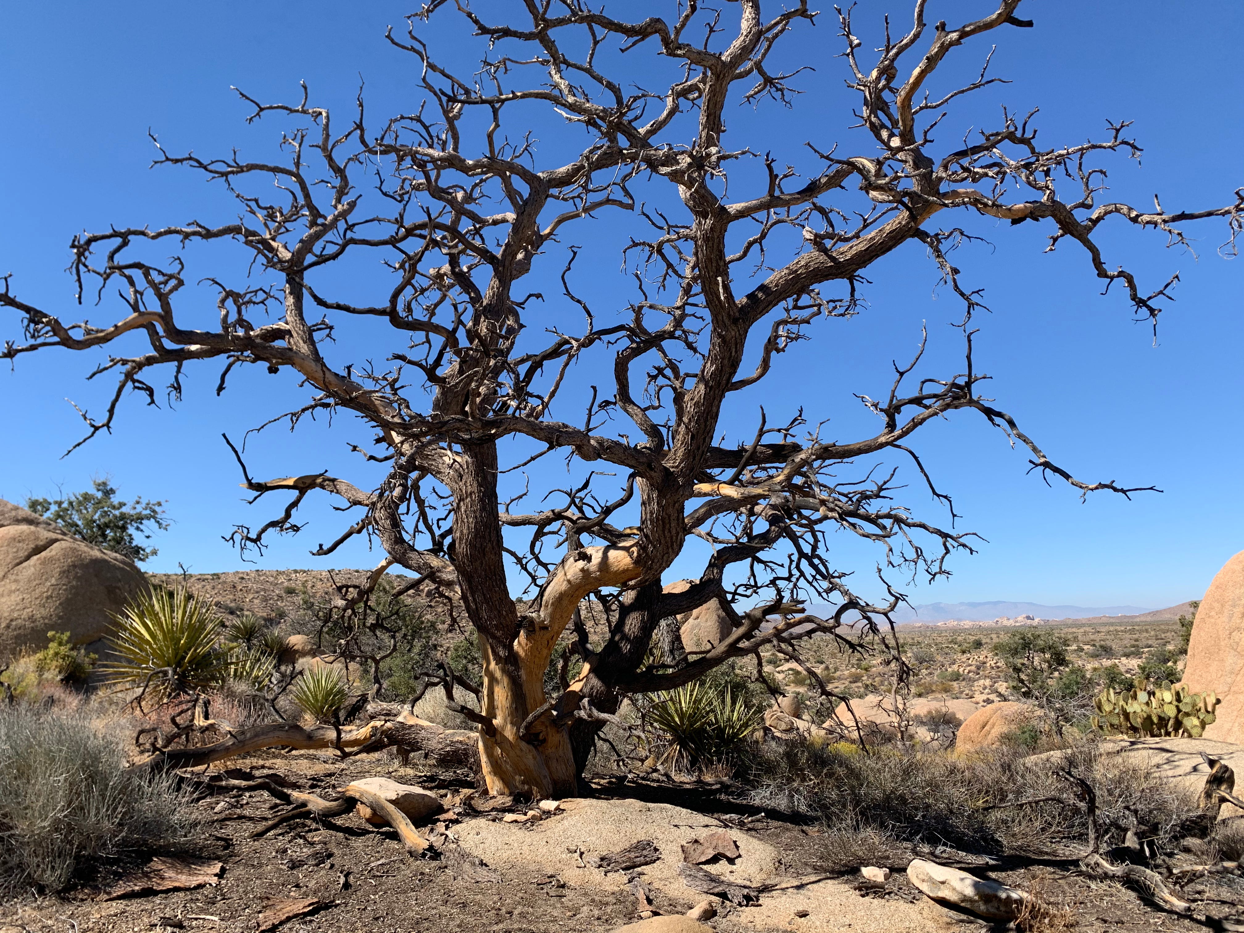 When I first heard about the Joshua trees I was like ok, they’re just trees tho, but really they are that amazing and they do deserve the hype. The Joshua trees dot the otherwise desert landscape like weird alien specters, watching and bending ever slowly toward the hot beating sun as the landscape around them remains crystallized, time eternal. The Joshua trees fall over sometimes when they bend too far to reach the sun. The top hits the ground then a new top grows out of the top, straight toward the heavens. Or else the tree snaps in half and it dies and the dead trunk withers and dries as it’s bleached by the sun for years.