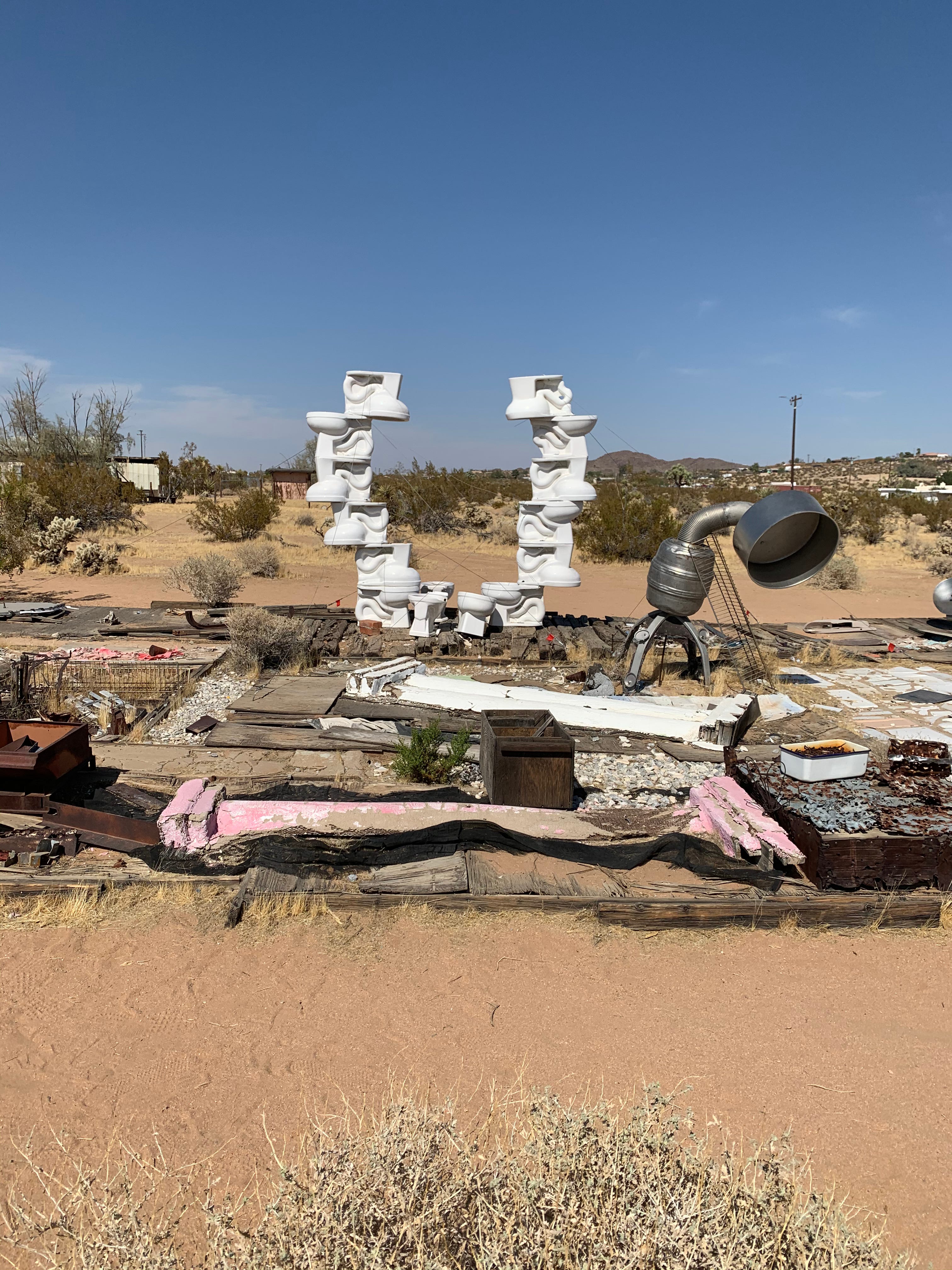 So on Saturday morning after a trip around Yucca Valley and Joshua Tree in which I bought a lot of alien fodder and a poncho and a cool trucker hat from my friend Lindsay, we headed to the Noah Purifoy museum tucked in a neighborhood in the middle of the desert. It was all trash statues and it was fucky and weird and gross and the product of a truly unique, perhaps even a bit deranged mind.
