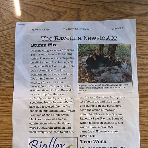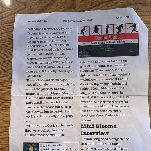 I really love the little bit on the second page about how one of the tree workers came over and did some tricks on his skateboard. That’s real fricken community journalism right there if you ask me.