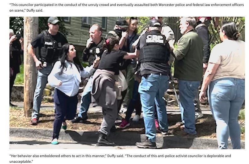 The police are fabricating stories about how a woman in elected office assaulted them so they can cry to ~the media~ about having been hit by a woman. Mommy she hit me. Literally. Lying in the smarmy way a brother would to get his kid sister in trouble. This Boston 25 article is a top-to-bottom embarrassment.