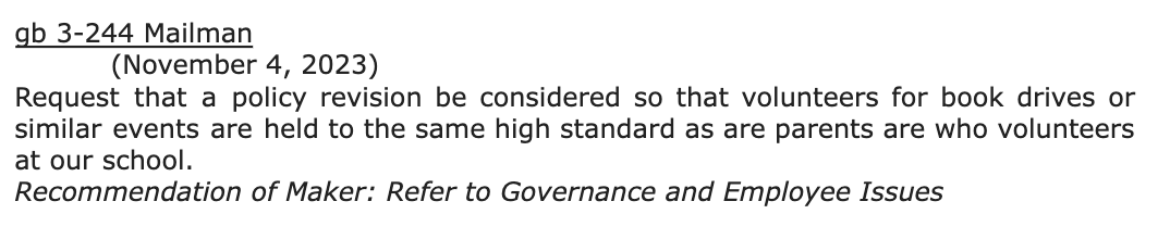 Member Molly McCullough attached an amendment to have the district consider a system-wide orientation program for volunteers. And then they moved on.