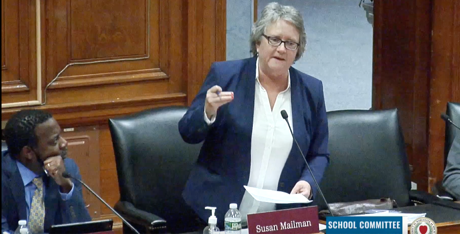 A few hours into the School Committee meeting last night Sue Mailman stood up and said the following: