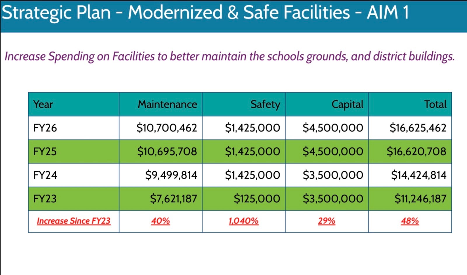 The response to repair requests has increased significantly, with 100% response or completion time within 72 hours. The district says this is due to both an increase in funds and improved systems.