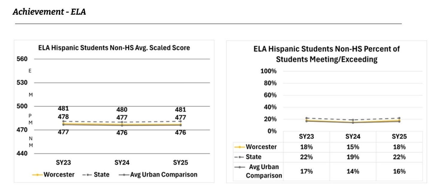 One third of Worcester’s student body is a year younger than every other district in Massachusetts, so developmentally it is not an equal comparison.