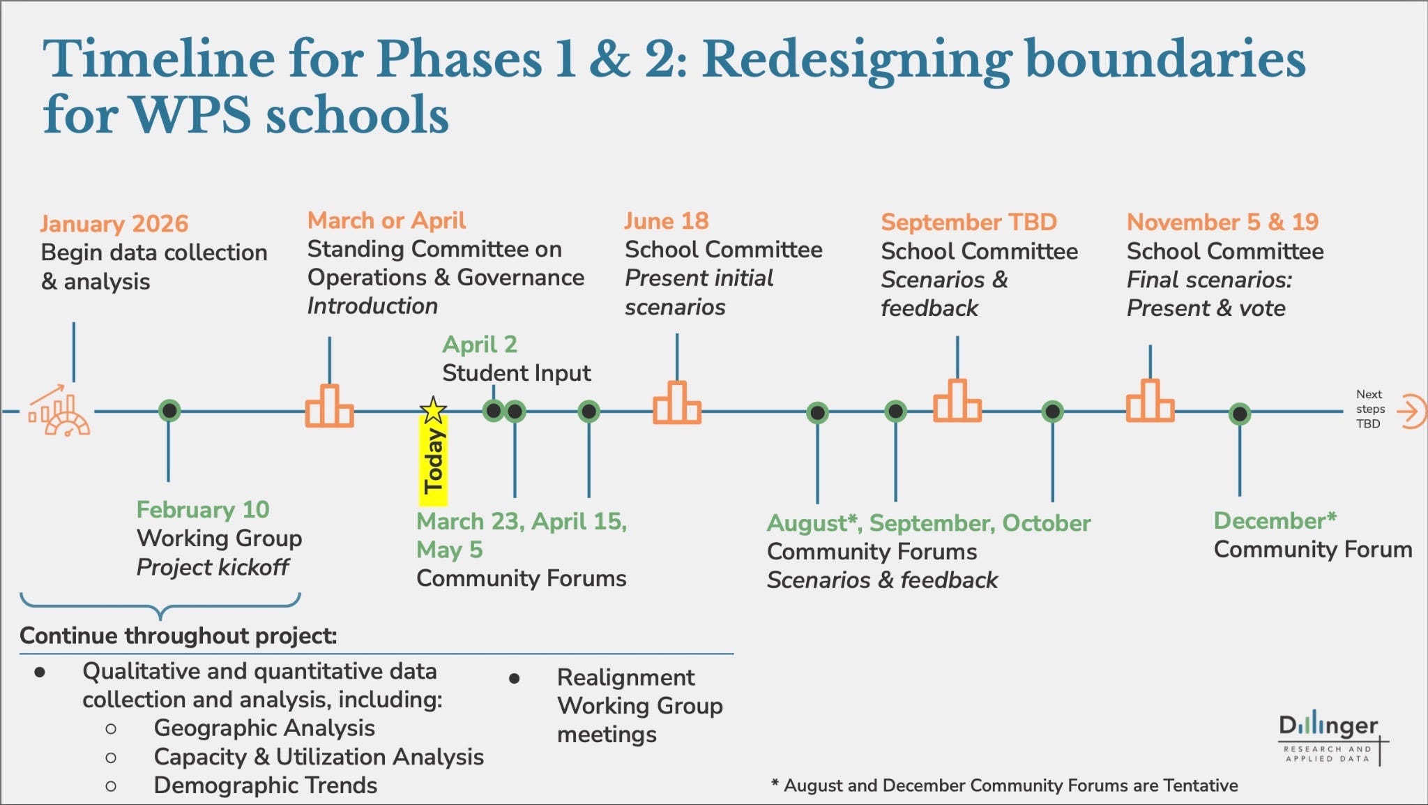 School Capacity: The district is analyzing over-enrollment and under-enrollment at schools, with updated capacity data expected soon. People at the meeting felt that they needed that information to better understand the development of school boundary scenarios. And participants emphasized the need to account for future enrollment trends and potential other factors, including shifts in enrollment tied to immigration enforcement.