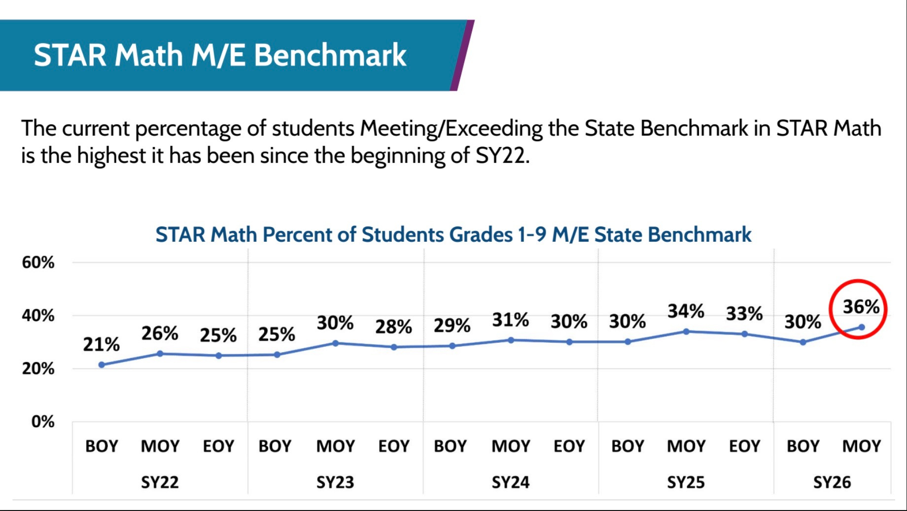 A major justification offered was “K–12 vertical alignment.” But using the same publisher across grade levels does not, on its own, guarantee alignment. Vertical alignment depends on how content is implemented, how teachers are supported, and how well concepts build from year to year in actual classrooms. The district did not lay out any concrete plan on how that would happen with a new curriculum roll out. At the same time, midyear Star data shows math performance across grades 1–9 is currently the highest it has been since the district began using the assessment. It’s unclear what portion of that growth is happening at the secondary level, which switched to Reveal in the Fall of 2025, and whether a major shift at the elementary level could disrupt that progress.