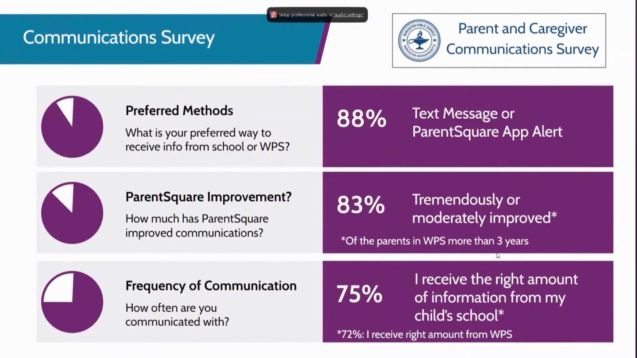 On the communications side, Chief Communications Officer Dan O’Brien described how the district has developed a more cohesive framework spanning internal, external, and crisis communication. Internally, this includes weekly principal updates, a new all-staff newsletter, and a centralized memo system. Externally, tools like the ParentSquare platform have significantly improved communication, particularly through real-time AI translation, with survey data showing strong family preference for text-based updates and overall improvement in communication over time. Next steps include refining data collection of surveys and finalizing a communications framework to guide long-term strategy.